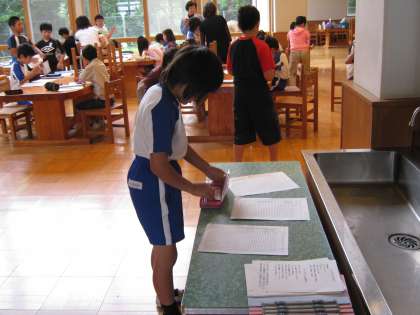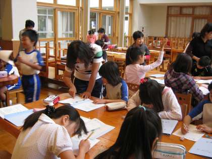 今年に入って4回目のオープンルーム。毎週木曜日の10分間の繰り返し学習コーナーです。今年も100名近くの子どもたちが,学年枠の内容を外して,基礎から学び直すプリント学習で基礎基本を定着させます。短い朝の学習タイムですが,集中した中に活気が満ちています。子どもたちは,自分の進度に合わせて学習します。先生方も,個人指導をしたり○付けをしたり。「よくできているよ。」と声をかけたり,一緒に考えたり。ふれあいのひとときです。