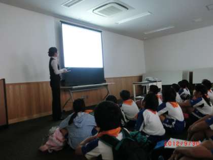 茨城空港では会議室でお弁当を食べた後,離陸を待つ上海便を見ました。小さい飛行機でしたが,とても近いところにいて,乗客が乗り込んでいくところが見えました。残念ながら時間の関係で離陸は見ることはできませんでした。最後に空港のことをスライドで教えていただきました。国際線のある空港の中では日本で一番小さい空港だそうです。