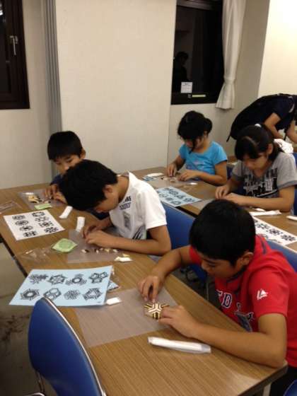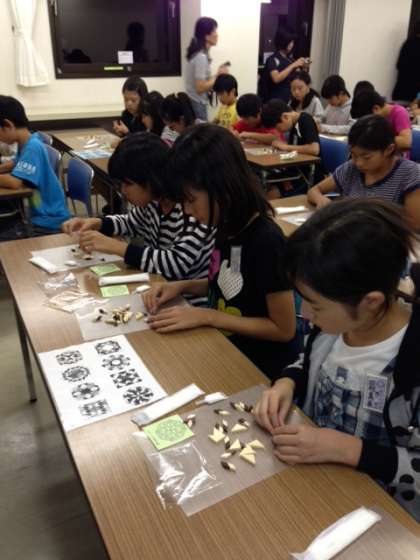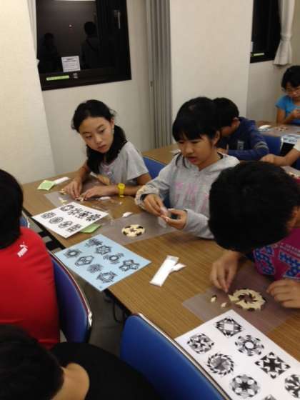 修学旅行速報:寄せ木細工に挑戦中