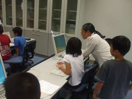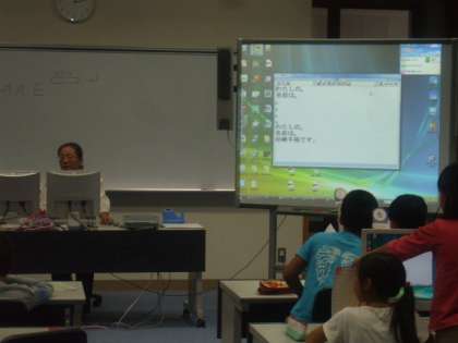 国語の時間でローマ字を学習したことを利用して、総合学習の時間にコンピュータでローマ字入力を体験しました。スタディノートというソフトを使い、自分の名前をかきました。名前を入れることが難しく、「どうやったら自分の名前が漢字であらわせるかなあ。」「違う読み方で入れるといいよ。」子どもたちはお互いに教えあいながら楽しくコンピュータに接しました。
