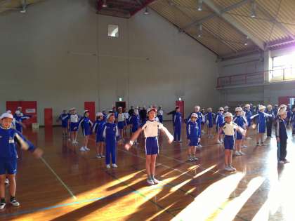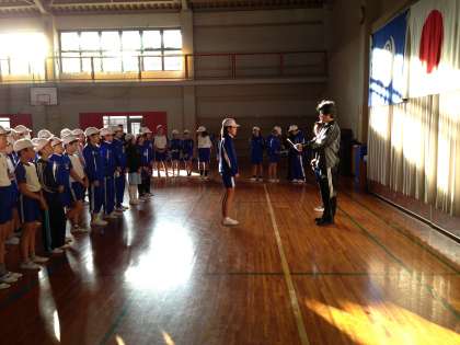 2日目、朝の集い。 ラジオ体操やオリエンテーリングの表彰を行いました。