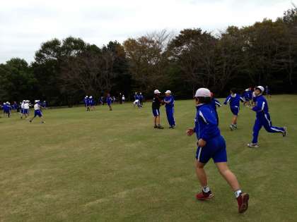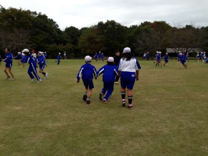少し肌寒いので手つなぎ鬼をやって体を温めています。