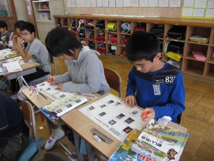 社会では,「明治の国づくりを進めた人々」について学習した後,人物関係マップを作成し,学習のまとめを行いました。主な人物12人の関係を考えながら写真を配置し,矢印でその関係を記したり,キーワードを用いて業績を書き込んだりしました。教科書,ノート,資料集を使いながら,集中して学習の振り返りができました。また,先日の修学旅行での国会見学もあり,大変興味をもって取り組んでいました。