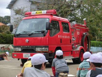 消防自動車を見せてくださった消防団は取手第3分団です。先日の消防団の大会で優勝し今度は県大会に出場するそうです。ご活躍をいのります。
