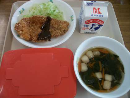 今日の献立(体力みがき) 公開日 2013/11/01 更新日 2013/11/01 子どもたちの活動 10月31日(木) (体力みがき) <献立>麦ごはん 牛乳 味噌カツ ボイルキャベツ すまし汁 今月の日本の食べ物の旅は「愛知県」です。