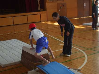学習ボランティアの塚田先生をお呼びして、体操教室を行いました。マット運動では鉛筆まわり、前転、開脚前転、後転を行い、跳び箱では開脚跳びを教えていただきました。一つ一つの技のポイントを丁寧に教えていただき、たくさんの子が今までできなかったことができるようになりました。最後にみんなで楽しく「タタロチカ」というフォークダンスを踊りました。「ヤクシー!」と大きな掛け声をかけ、楽しく踊ることができました。塚田先生、楽しいひと時をありがとうございました。