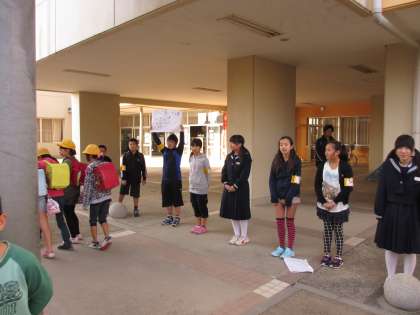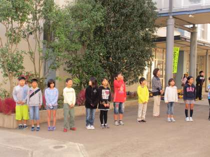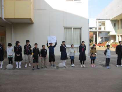 本日は,いばらき教育の日の取り組みとして,マナーアップ委員会の児童と4年1組の児童(あいさつ運動の担当日)が,取手一中のお兄さん,お姉さんと一緒にあいさつ運動を行いました。中学生と一緒に行うことで,いつもよりも元気でさわやかなあいさつをすることができました。