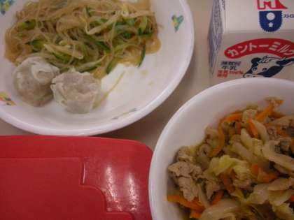 7月17日(月)給食 公開日 2012/07/19 更新日 2012/07/19 子どもたちの活動 <献立>麦ごはん,牛乳,回鍋肉,シュウマイ,春雨サラダ 暑い日が続いています。暑い時はビタミンB1を多く消耗します。豚肉にはビタミンB1が多いので,暑い時期にはぴったりの食品です。今日は豚肉とキャベツを炒めた「回鍋肉」です。味噌味でごはんが進みます。たまねぎも入っていますが,豚肉とたまねぎを一緒に食べるとビタミンB1の吸収が良くなるのです。もりもり食べて,暑さに負けずに過ごしましょう。
