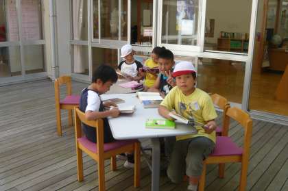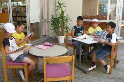 7月19日 心みがき・ウッドデッキで読書 全学年