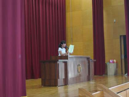 9月3日(月)1校時に始業式が行われました。校長先生からは,友だちを大切にいじめのない学校にしようというお話や,命はかけがいのないもの,たった一つの大切なものというお話をしていただきました。また,茨城県教育委員会教育長からのメッセージも読んでくださいました。5年生の児童から,運動会や宿泊学習で頑張りたいこと,学習では復習に力を入れるなどの2学期の抱負の発表がありました。さらに,夏休み中に東北地方へボランティア活動に行った先生から復興の現状や現地の方々の声を聞かせていただきました。映像の迫力に体育館が「シーン」と静まりかえっていました。