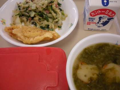9月4日(火)の給食は「日本の食べ物の旅」です。今月は沖縄県。「沖縄天ぷら」は,衣に塩味がついているので,天つゆがなくてもおいしくいただけます。今日はイカを使いましたが,材料は何でも構いません。「野菜チャンプルー」は野菜の炒め物です。ゴーヤ,にら,もやし,ソフトサラミを使いました。ゴーヤは暑さに負けないためにも食べたい野菜です。茹でてから使うと,苦みが和らいで食べやすくなります。「アーサ汁」はアオサという海藻を使ったみそ汁です。もりもり食べて,沖縄の元気をもらいましょう。