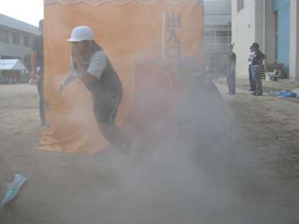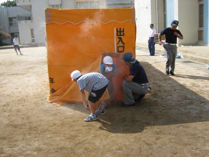 9月4日(火)5校時に避難訓練を行いました。避難では,「お・か・し・も」をしっかり守って行動し,前回の訓練よりも1分近く早い時間で避難を完了することができました。その後に,煙ハウスを使って煙の中を避難する体験をしました。視界がほとんど効かない中を避難する難しさを実感したようです。姿勢を低くして避難するという鉄則を守って真剣に活動していました。
