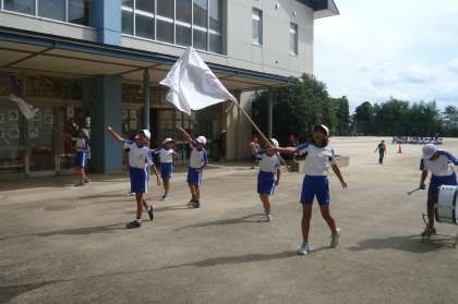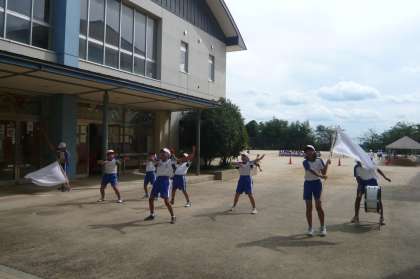 外では,運動会の応援団の児童が自主的に応援の練習をしていました。