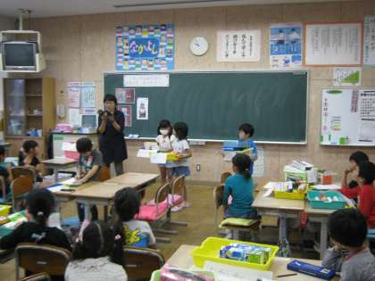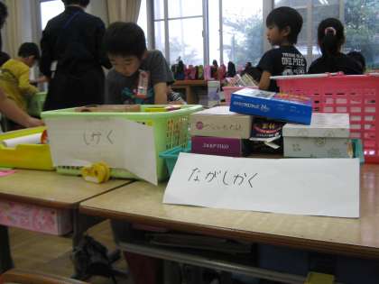 1年生 いろいろなかたち(知性みがき) 公開日 2014/10/01 更新日 2014/10/01 1年生 算数科の学習で形の学習をしています。 いろいろな立体の似ているところを見つけて,仲間分けをします。「これはつつのかたち。」「しかくがあるね。」子ども達は似ているところを探していきます。でも,四辺が等しい四角とそうではない四角を同じ仲間にしてよいのか悩む様子も見られました。こうした活動を通して図形の見方を深めていきたいと思います。