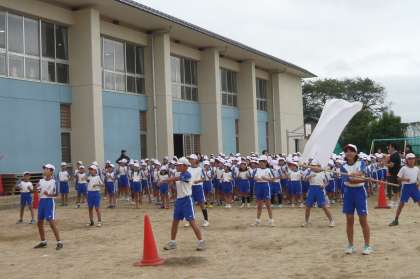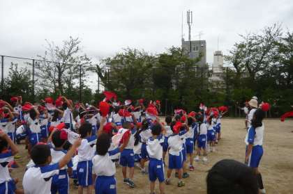 心みがき 一致団結 心をひとつに 公開日 2012/09/25 更新日 2012/09/25 6年生 3校時に運動会の全体練習をしました。今日は応援合戦の練習です。6年生の応援団長を中心にして自分たちが考えた応援の仕方を赤組,白組のみんなに説明しながら,練習をしました。各組とも心をひとつにしてがんばっていました。