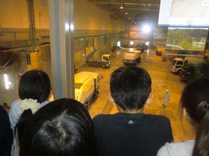 説明を聞いた後に,実際にごみ資源化処理をしている様子を見学しました。