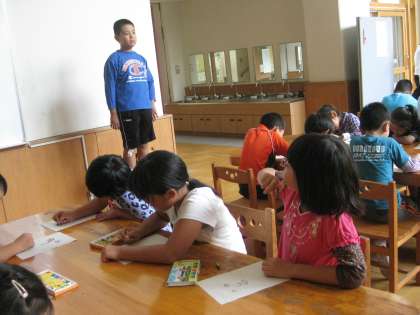 他の子どもたちは,じっと友だちの顔を見つめ,ゆっくりゆっくりと線をのばしていきました。