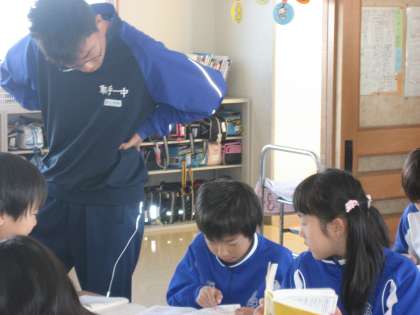 一中生が、職場体験をするために取手小学校に来てくださいました。