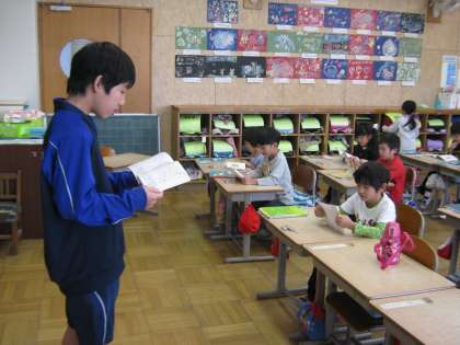 1年生の各学級で取手一中の2年生が担任の仕事を体験しました。国語科の学習では詩の音読や読み聞かせをしてもらったり,算数科では計算の仕方を個別に教えてもらったりしました。