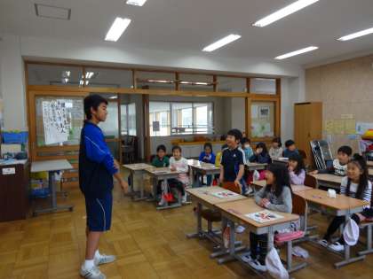 2年2組にも2日間,取小を卒業した男子生徒が来て,勉強を教えてくれたり,休み時間に一緒に遊んでもらったりしました。