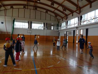 2日目には,質問タイムでいろいろなことを聞き,ドッジボールを楽しみました。小学生のときに市のドッジボール大会で優勝したこともある先輩から,ドッジボールが上手になるコツもアドバイスしてもらいました。