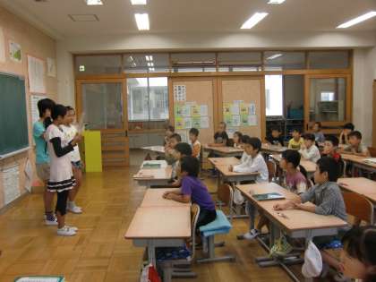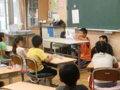 毎週水曜日,朝自習の時間は図書委員会の5,6年生による読み聞かせがあります。「3びきのこぶた」「ジャックとまめの木」などのお話を紙芝居してくれます。よく知っている物語でも子どもたちの顔は真剣そのもの。お兄さん,お姉さんの話にじっくり聞き入っています。時には笑ったり,驚いたり。来週はどんなお話が聞けるでしょうか。