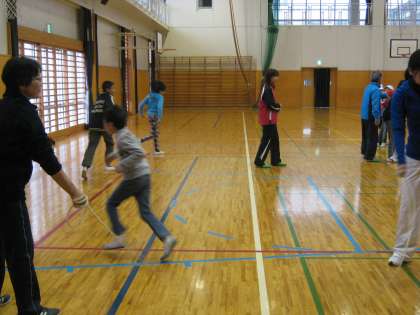 低学年のグループは縄をゆっくり回してとぶ練習をしました。