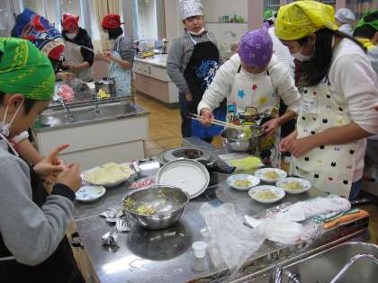 さずがは6年生。これまでの調理実習の経験を生かし、協力しながら手際よく調理を進めていました。