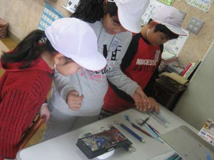 その後、デジタルのはかりや、バネばかりを使って身近な物の重さを量ってみました。
