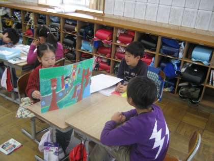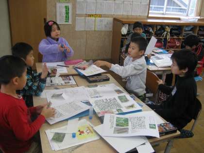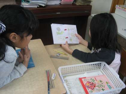 物語を作って紙芝居にしたグループ、ミニずかんにしたグループなど、それぞれの表現方法で、2年生に伝えようとやる気満々です。