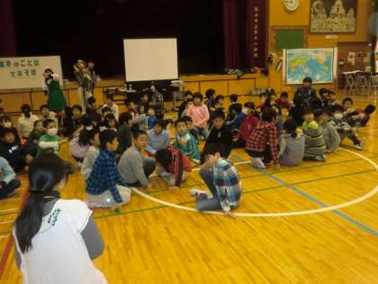 子どもたちは様々な国の言葉を聞き,一生懸命まねをしていました。