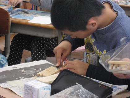 小さい板なので作業が難しく、細かい模様を彫るのも大変です。