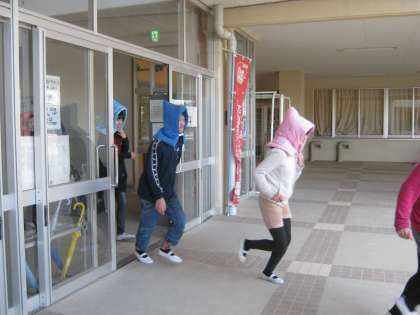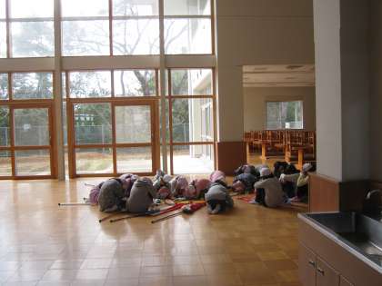 今回は、事前に避難訓練があることを知らせず、昼休みに大地震が