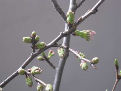 これは、2月に校庭の桜の枝を切って職員室にいけていたものです。