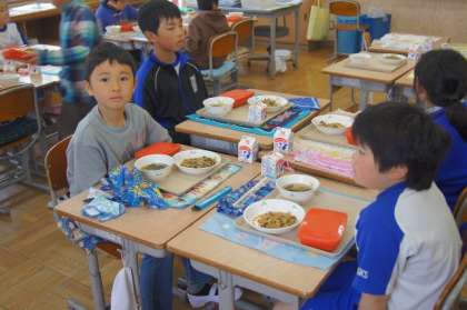 子どもたちは,「いただきます。」と元気よくあいさつし,笑顔で給食を食べていました。