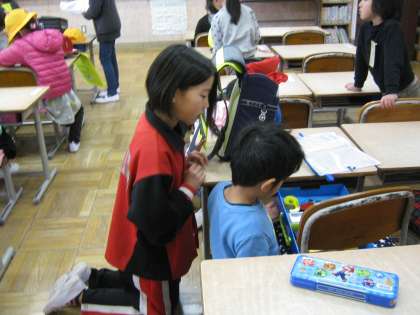 1年 学校生活がスタートしました! (知性みがき・心みがき) 公開日 2015/04/13 更新日 2015/04/13 1年生 4月7日,取手小学校に元気いっぱいの1年生が入学しました。 早速次の日から,初めての学校生活がスタートです。 6年生のお兄さん・お姉さんに手伝ってもらいながら,自分で名札を付けたり,手を挙げて発表したり…。 すべてが初めての体験。毎日,頑張っています!