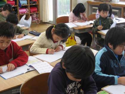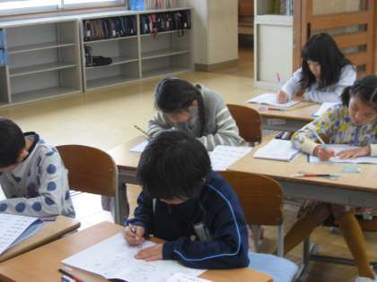 朝の用意を済ませるとすぐに朝の自習を始めます。