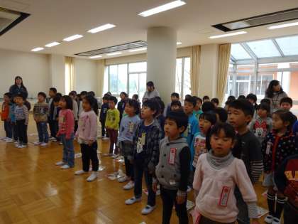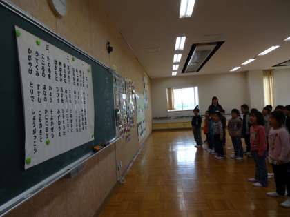 お兄さん・お姉さんが取小に通っていたり,中にはお父さんやお母さんが卒業生という子もいて,みんなスムーズに3番まで歌えるようになりました。