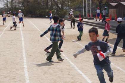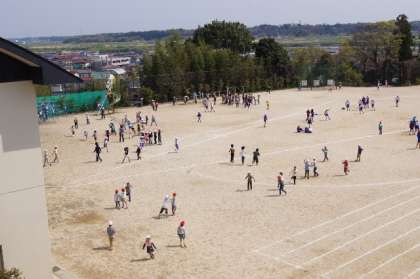 元気に体を動かす子どもたち。校庭からたくさんの歓声が聞こえてきました。