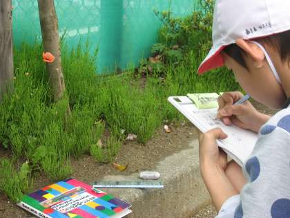 理科の学習で校庭の自然を観察しました。