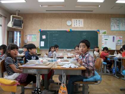 <献立>山菜うどん 牛乳 竹輪の磯辺揚げ