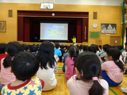 内容は「連休の過ごし方」。してはいけない危険な遊び,子どもだけで行ってはいけない場所など,長いお休みを安全に過ごすためのルールを先生や上学年の発表から教えていただきました。