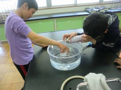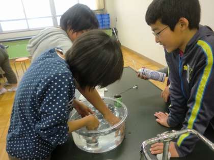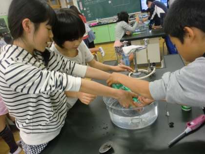 子どもたちは説明をよく聞き,ルールを守って実験しています。