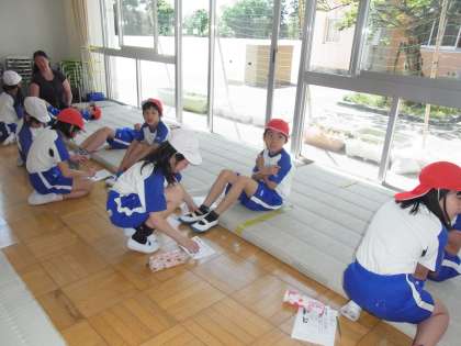 体育科の学習で,5年生に体力テストの測定のお手伝いをしてもらいました。