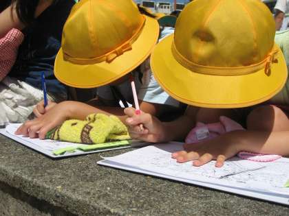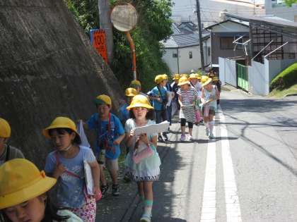 夏を思わせるような暑さでしたが、子どもたちは1時間近くの道のりをしっかりと歩き気がついたことをメモしていました。