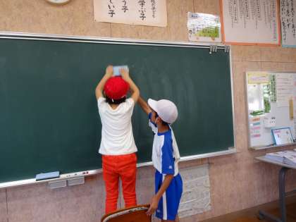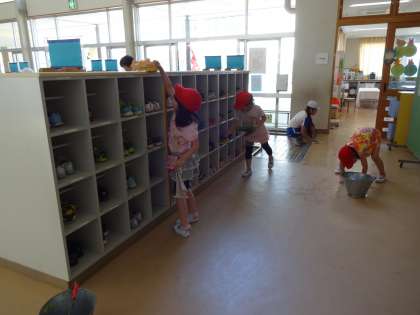 1年 掃除当番スタート! (ふれあいみがき) 公開日 2015/05/14 更新日 2015/05/14 1年生 今週から,当番ごとに分かれて,教室・廊下・生活科室・くつ箱の掃除を行うようになりました。 ほうきやちりとりの使い方や,ぞうきんの絞り方など,ひとつひとつ確認しながら進めています。 自分たちが使う場所を,しっかり自分たちできれいにできるように,頑張っているところです。