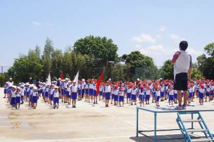 運動会の全体練習で,応援練習を実施しました。(心みがき)