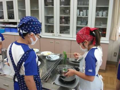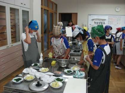 1組にひき続き,今日は2組の子どもたちがゆで野菜の調理実習を行いました。どの班もやる気満々で実習に臨みました。