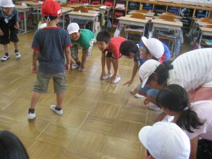 今年になって初めてのたてわり活動がありました。6年生は最高学年として,リーダーを中心に遊ぶ内容を決めたり,遊びを仕切ったりと活躍していました。室内ではいすとりゲームやばくだんゲーム,外ではドロケイやボール遊びなどで盛り上がっていました。6年生のさり気ない気遣いや優しい一面がたくさん見られたたてわり活動になりました。