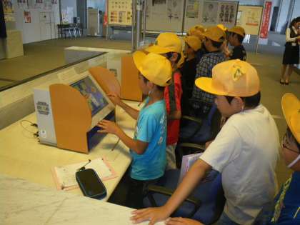 地上100mの展望台ロビーからは,残念ながら遠くまで景色は見えませんでしたが,映像クイズなどを見ながら,茨城県の勉強ができました。